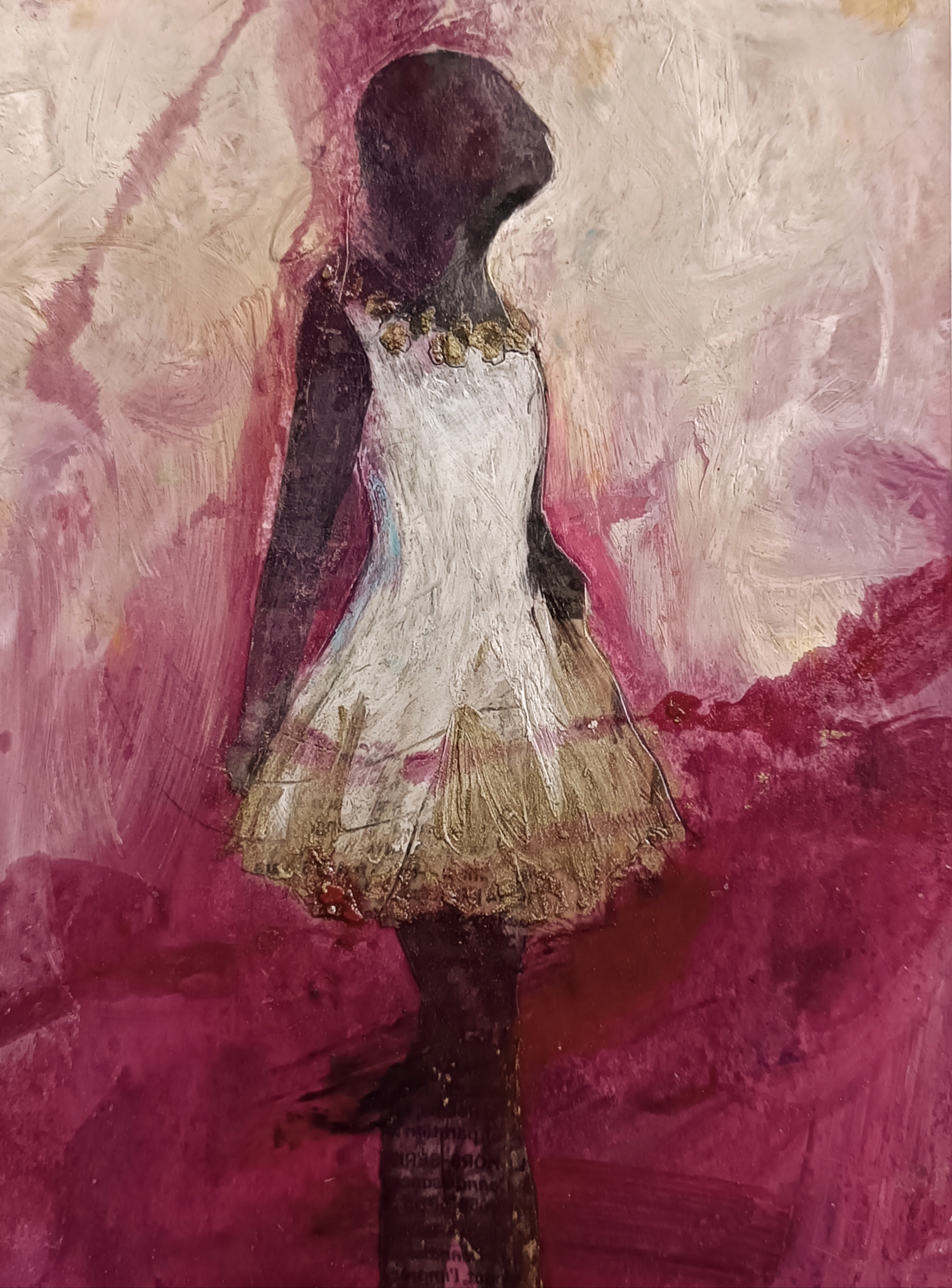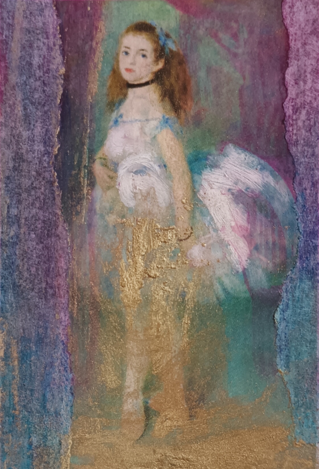 Peinture est un travail réalisé spécifiquement pour l’exposition : « À vos étrennes » (petits formats, petits prix), organisé à la galerie : « La moustache et des dentelles », à l’occasion des fêtes de Noël 2025.